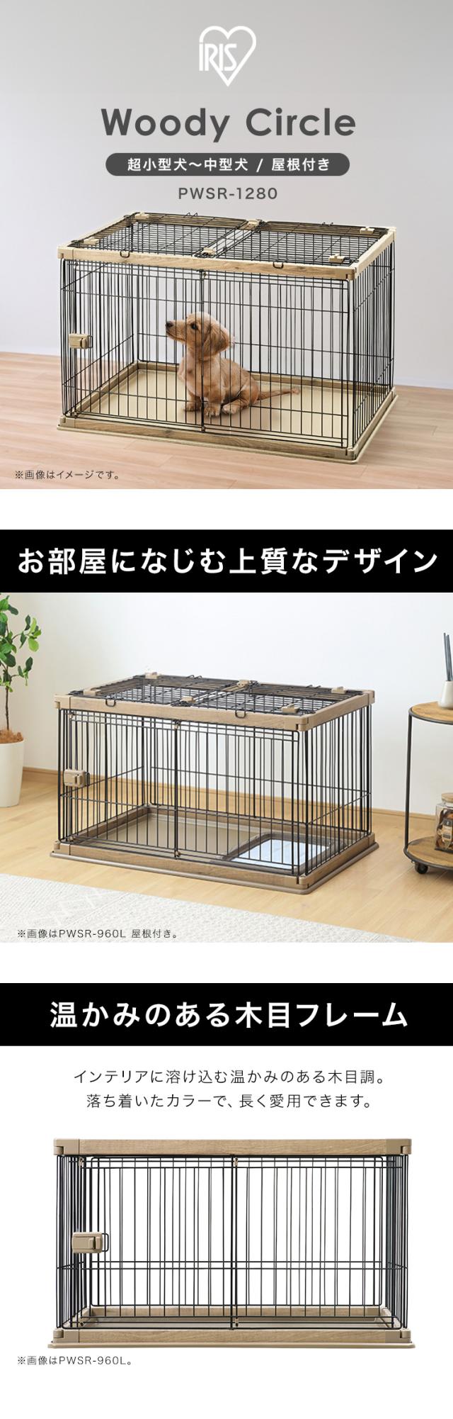 犬 ケージ 屋根付き サークル ウッディサークル 奥行広々 超小型犬〜中型犬 幅120cm×奥行80cm×高さ71cm 木目調 PWSR-1280 トレー付き アイリスオーヤマ おしゃれ 木製風 ゲージ 木目 ペットケージ ペットサークル ペット用品 送料無料