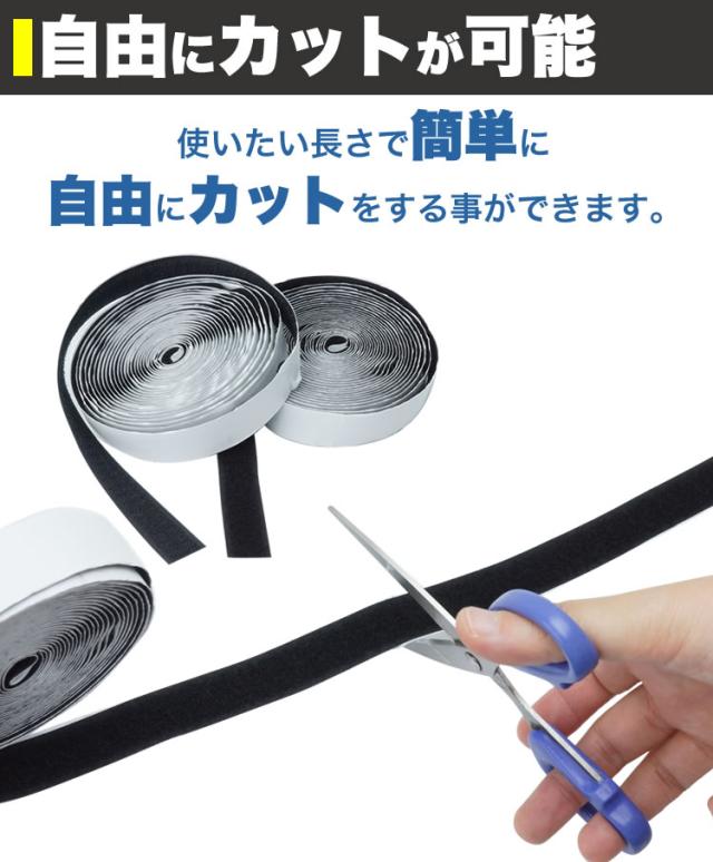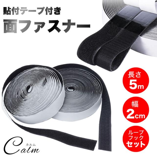 面ファスナー マジックテープ 粘着 長さ5m 幅2cm 貼付テープ 両面テープ オス メス セット 網戸 工作 ズレ防止