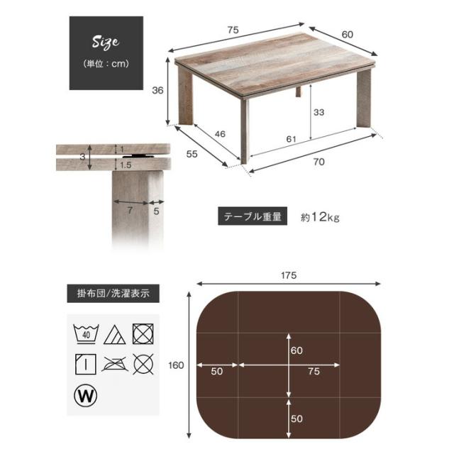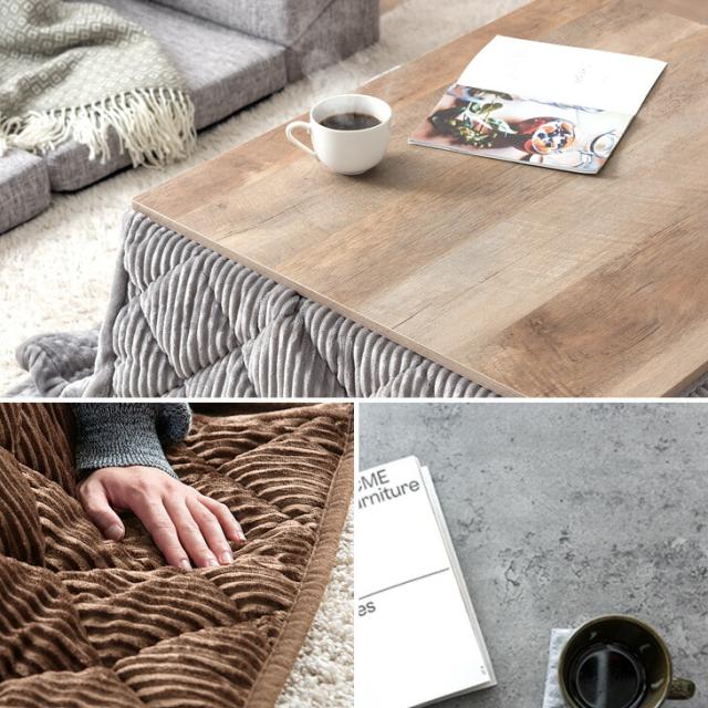 一人暮らしにぴったり カジュアルこたつ 2点セット 75×60 コーデュロイ生地 掛布団 + こたつテーブル 省スペース コタツ こたつセット おしゃれ 木目調