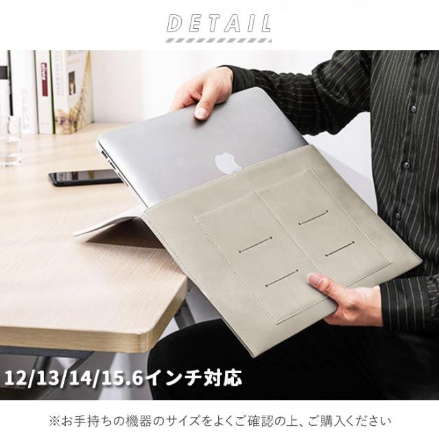 | 商品説明 | ・社会人や学生さんの必需品!テレワークでのパソコンやタブレットの持ち歩きに便利な、ノートパソコンカバー。 ・フラップは、簡単に開閉できるマグネット式。 ・軽量スリムタイプなので、ビジネスバッグやリュックの中にも、すっぽりと納まる。 ・バッグフロントにカードが6枚収納できる2つのポケットつき。筆記用具やカード類など小物の収納に便利。 ・バッグ外側には滑らかな手触りの高品質PUレザーを使用。内側は機器や液晶画面を傷つけないよう、柔らかな起毛素材を採用。 ・12インチ・13インチ・14インチ・15.6インチ、4タイプのサイズ展開(※お手持ちの機器のサイズをよくご確認の上、ご購入ください。) ・ユニセックス仕様なデザインとカラー。 |