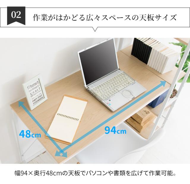 パソコンや資料を置ける広さの天板で勉強やテレワークに最適。