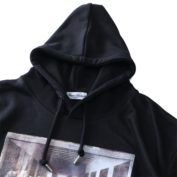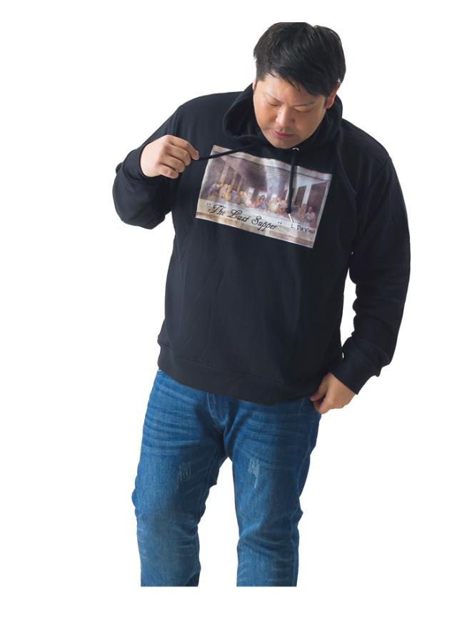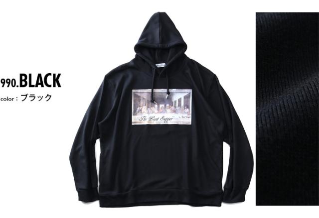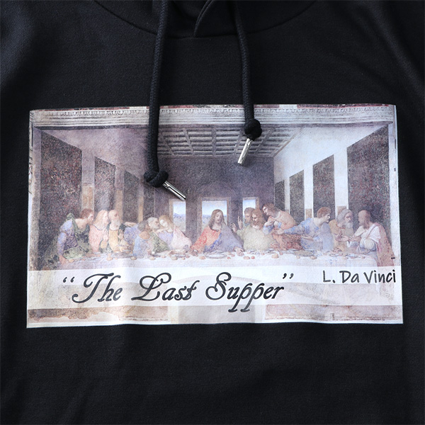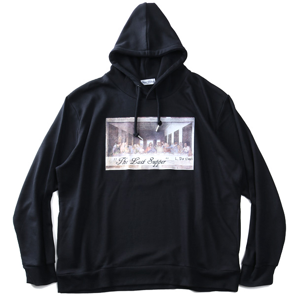 大きいサイズ メンズ SKKONE VINTAGE 長袖 絵画 プルオーバー パーカー 最後の晩餐 26386
