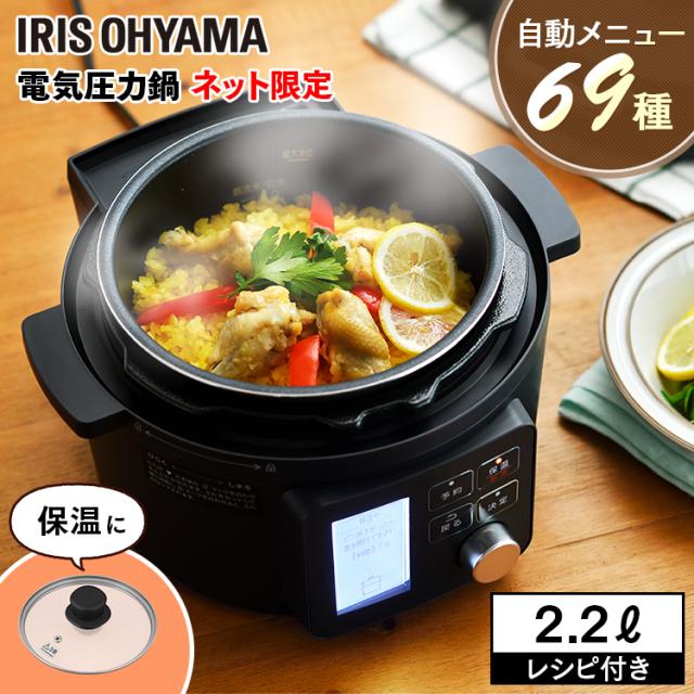 圧力鍋 電気圧力鍋 2.2L ブラック PMPC-MA2-B 電気圧力鍋 ナベ なべ 電気鍋 手軽 簡単 圧力鍋 圧力なべ 圧力 温度 無水 蒸し 低温 発酵 グリル アイリスオーヤマ 送料無料