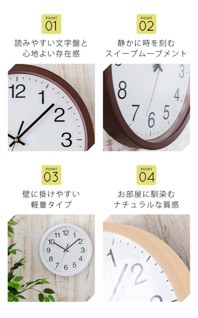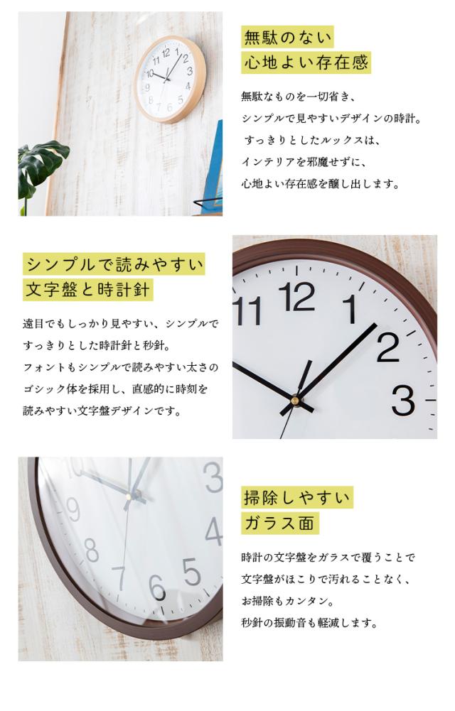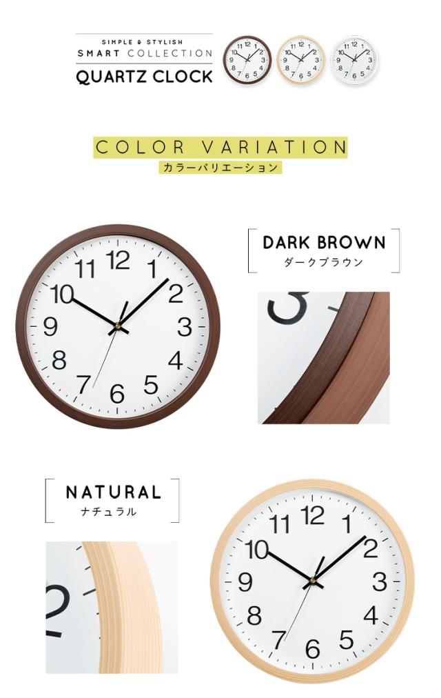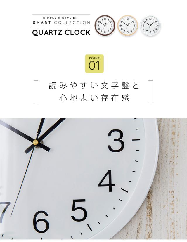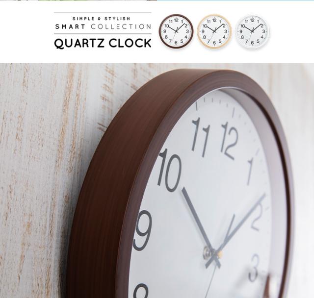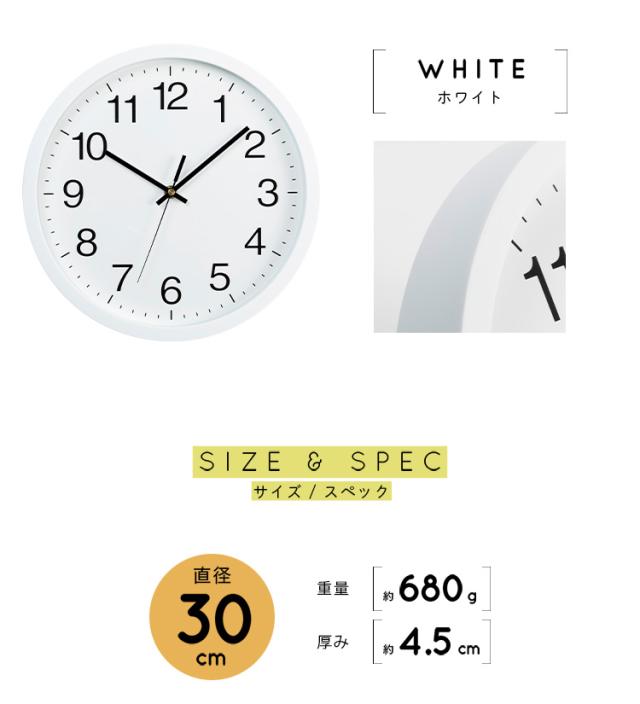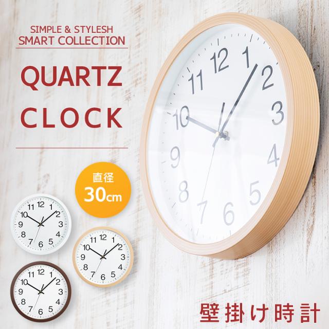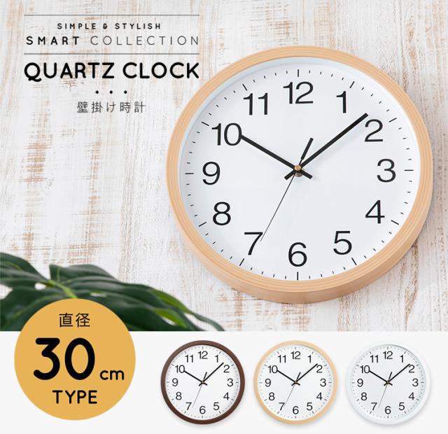 時計 壁掛け時計 PWCR-30-W ホワイト ダークブラウン ナチュラル 時計 ウォールクロック 壁かけ 直径30cm シンプル 乾電池 とけい インテリア 見やすい 掛け時計 【int】