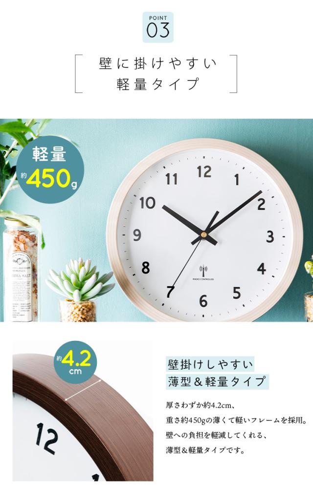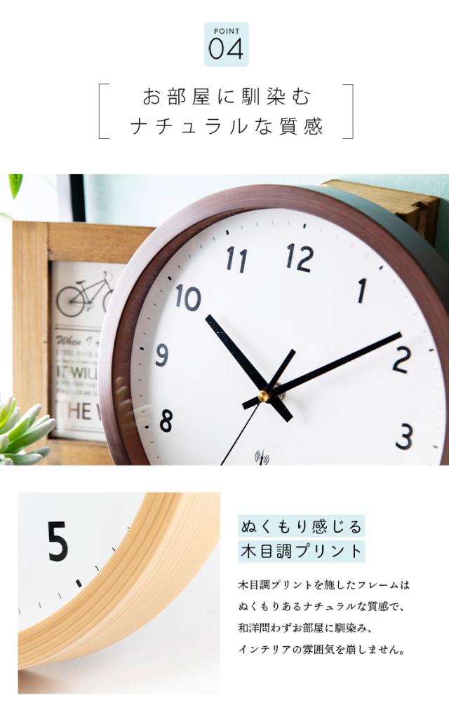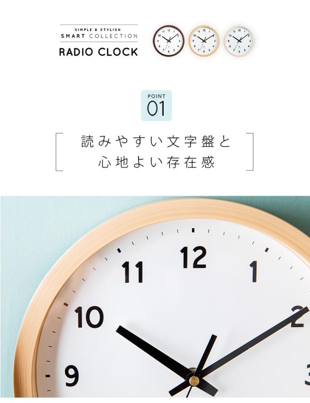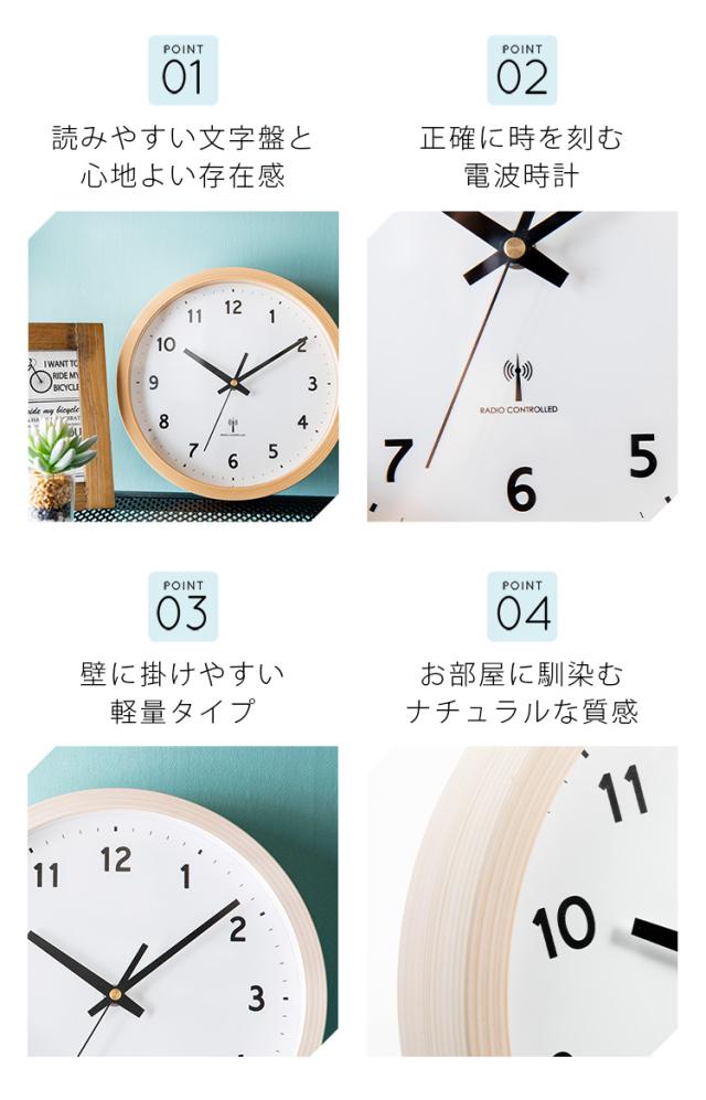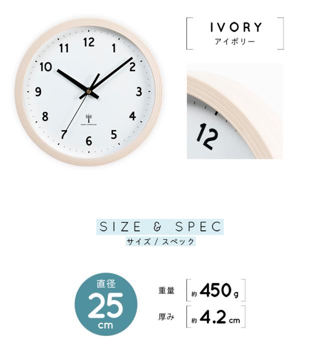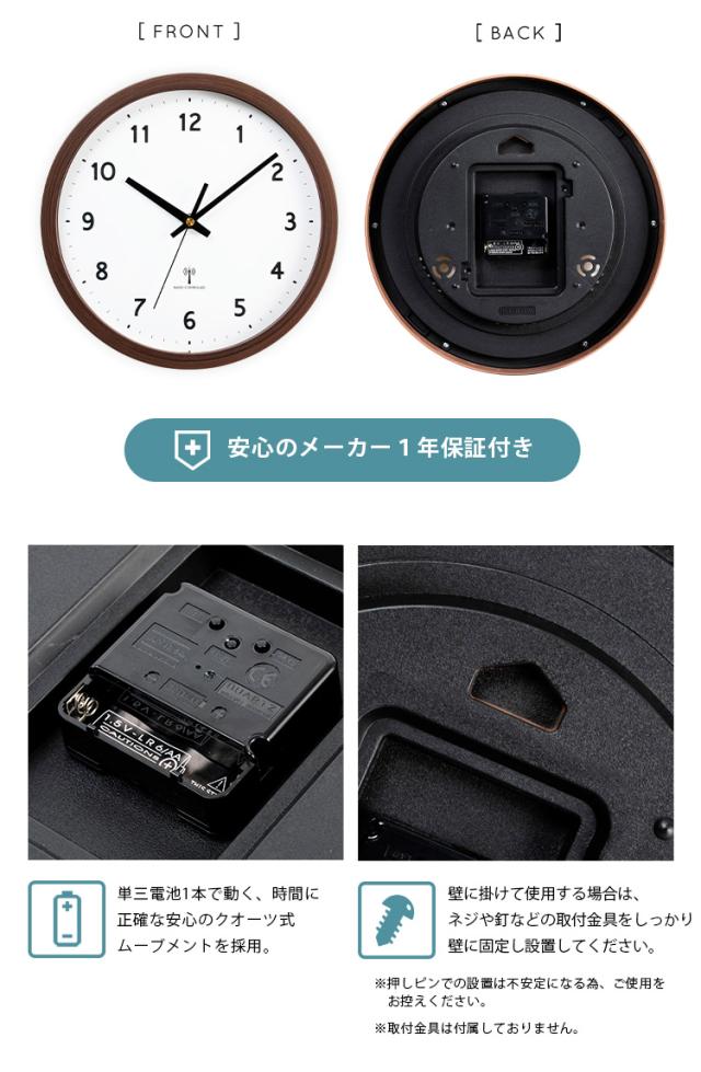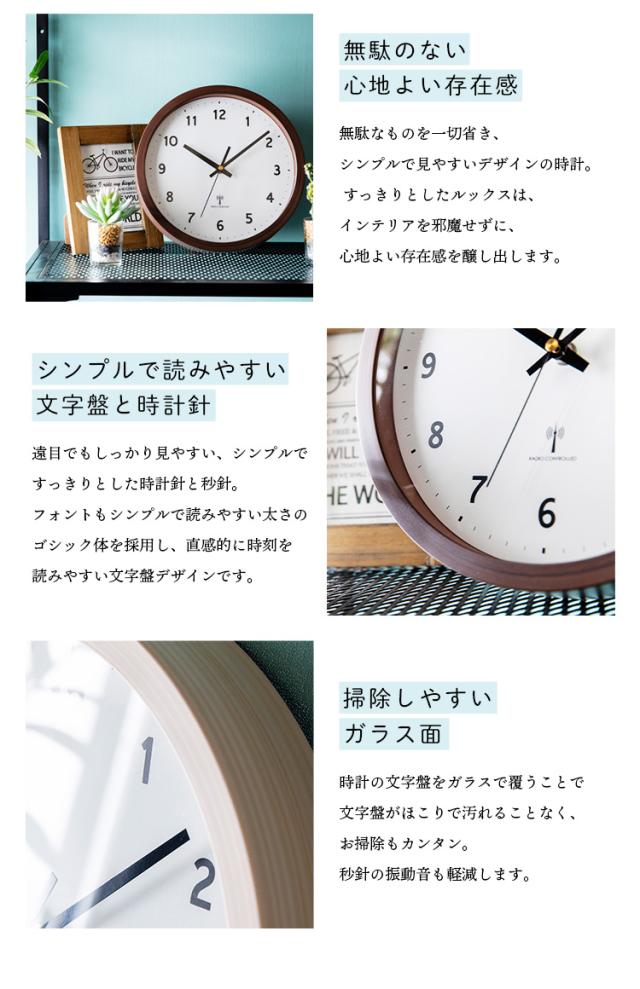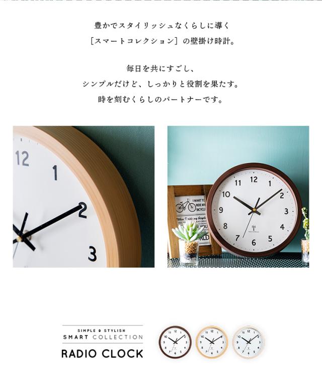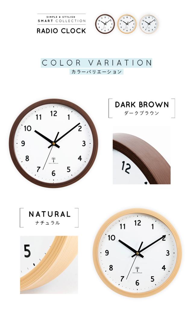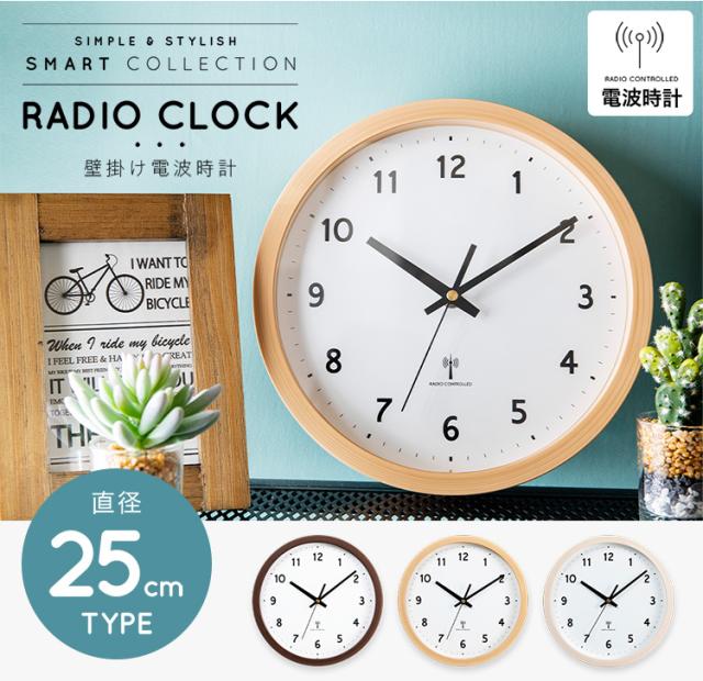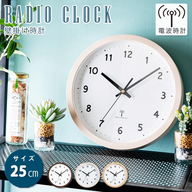 時計 壁掛け時計 PWCRR-25-C アイボリー ダークブラウン ナチュラル 時計 ウォールクロック 壁かけ 直径25cm シンプル 電波時計 とけい インテリア 見やすい 掛け時計 【int】