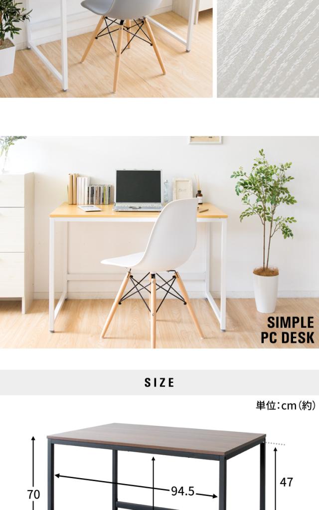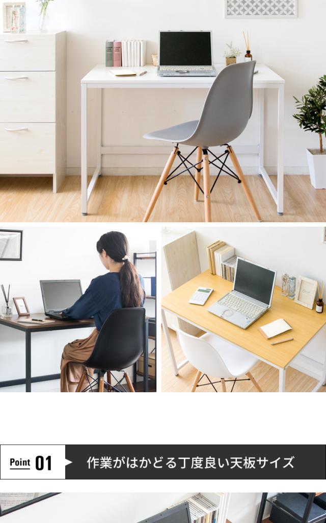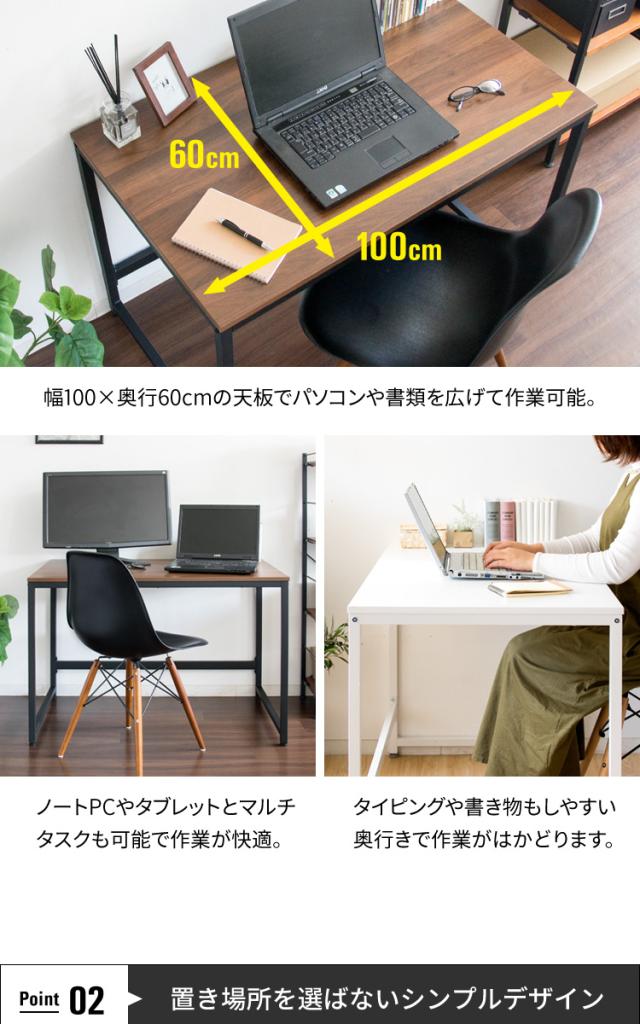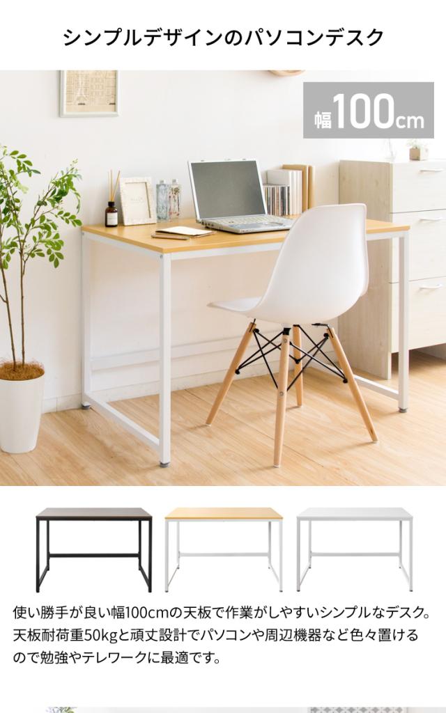 使い勝手が良い幅100cmの天板で作業がしやすいシンプルなデスク。