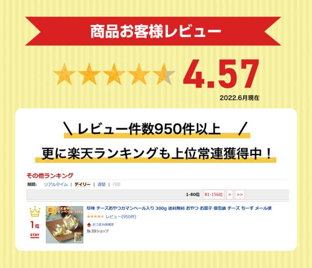 - ちょこっと食べるのに丁度良いので無くなりそうになるとリピートしてます。味も良いです。