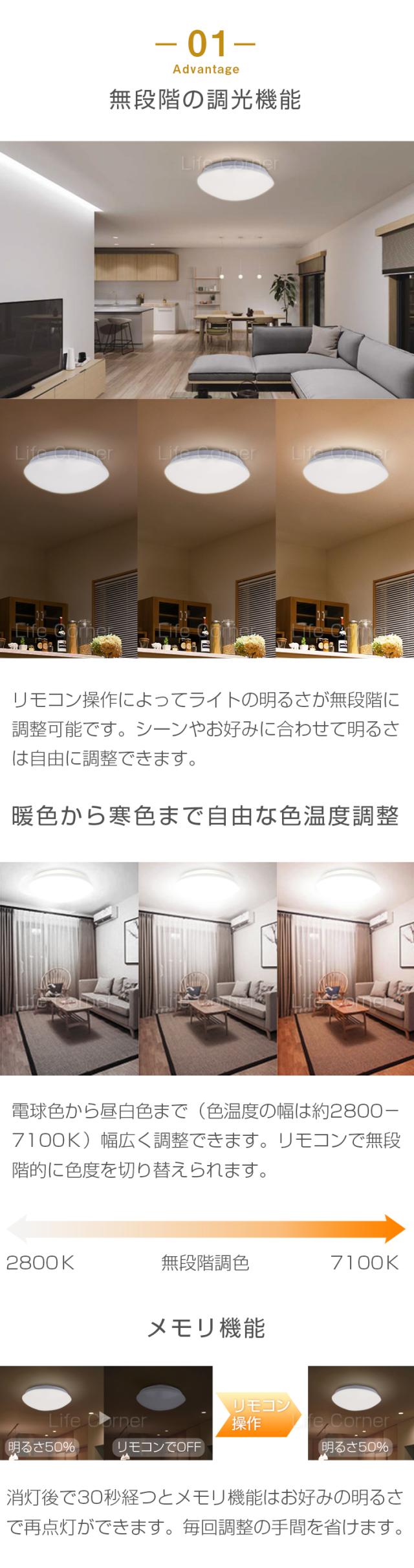 3.無段階調光調色、様々なシーンやお好みに合わせて灯りを調節できます。