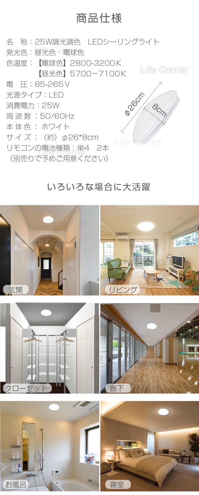 種類:昼光色・電球色・調光調色(リモコン付き)