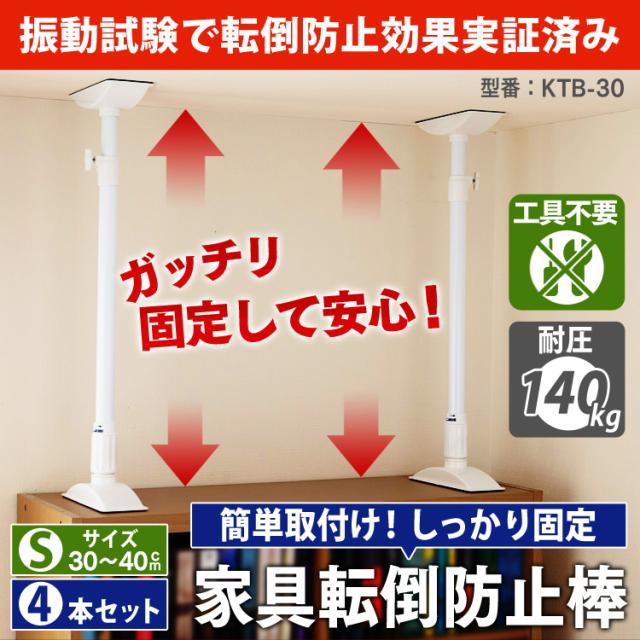 【4本セット】 Sサイズ KTB-30 アイリスオーヤマ 転倒防止 家具転倒防止 伸縮棒 地震 震災 防災つっぱり棒 転倒防止 突っ張り棒 地震 耐震対策 つっぱりポール 地震 耐震対策 強力 地震対策 防災グッズ 家具転倒防止棒