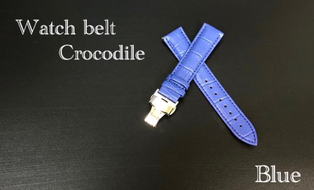 2 腕時計ベルト 時計バンド 替えベルト Dバックル レザー カーフ革 クロコダイル型押し 腕時計 時計 修理 レザーベルト 20mm ブルー