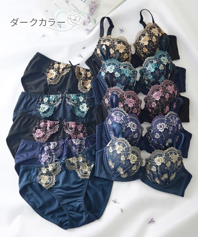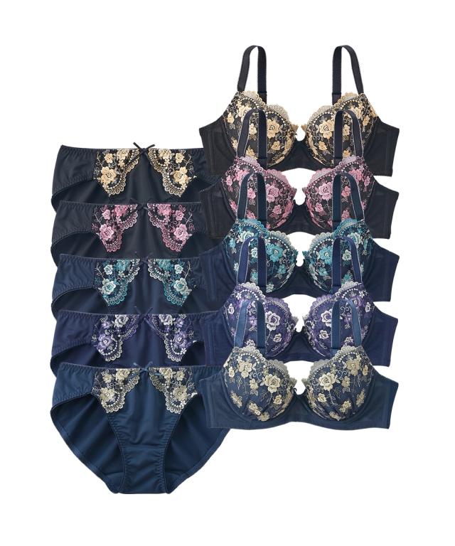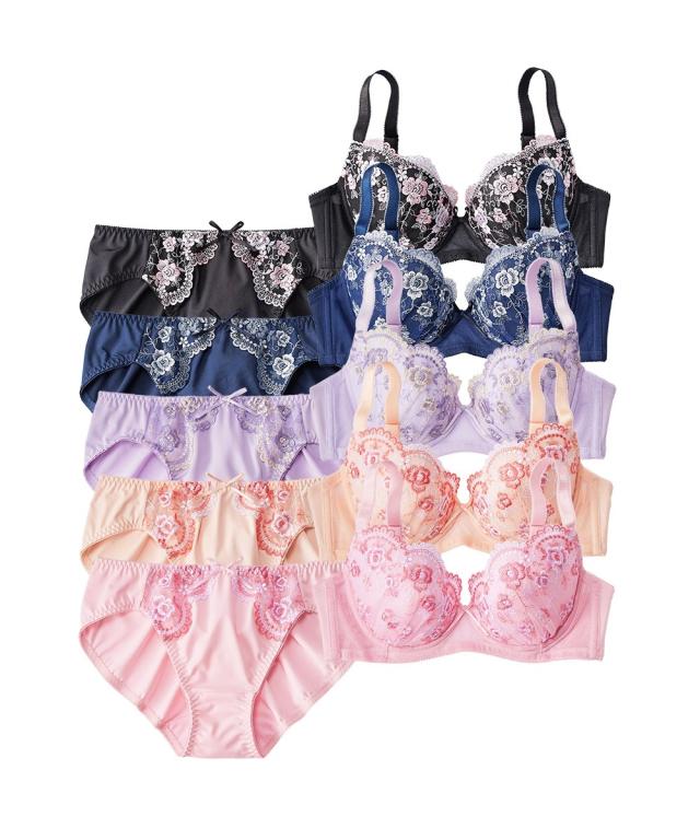 ブラジャー ショーツ セット レディース 小花柄 刺しゅう 5セット組 A70_M〜D80_Lニッセン nissen