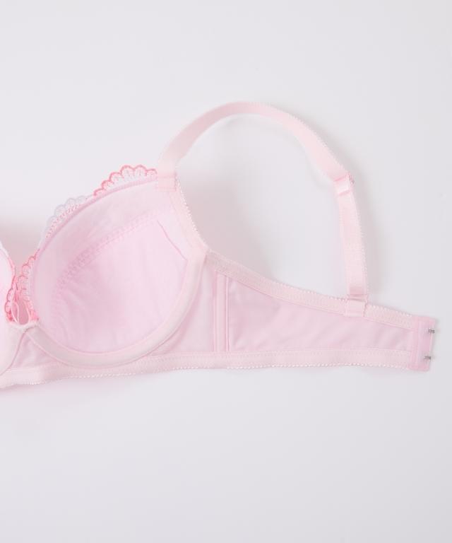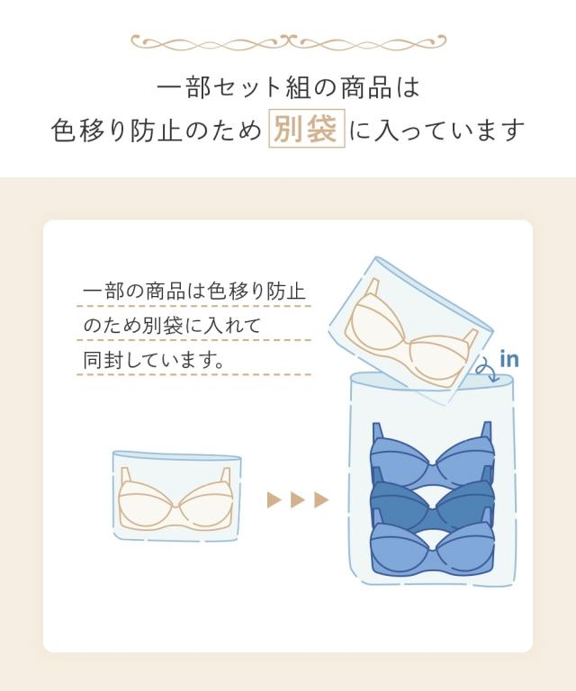 品質=ポリエステル・ポリウレタン・その他(ショーツ身生地はツーウェイトリコット) 3/4カップ ワイヤー入り アンダーバスト80cmまでは後ホック2段3列、アンダーバスト85cm以上は後ホック3段3列 サイドボーン入り アンダーバスト80cmまではパッドなし、パッドポケット付 アンダーバスト85cm以上はパッドなし、パッドポケットなし アンダー85cm以上はストラップ調節は前になります。柄が多少異なる場合があります。 原産国:中国製 洗濯表示:ブラジャー:手洗い、ショーツ:洗濯機OK ※お洗濯は、必ず取り扱い表示にしたがってください。
