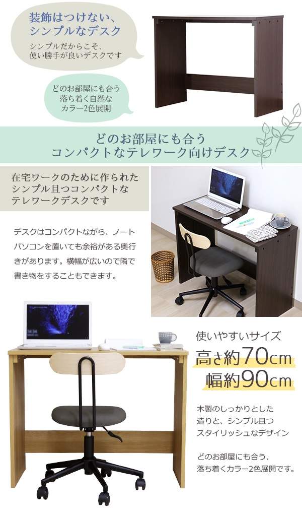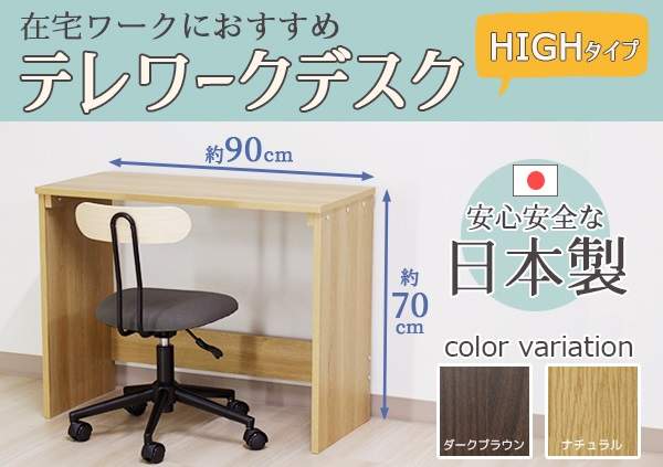 テレワークデスク 幅90 ハイタイプ デスク 机 つくえ 平机 シンプル テレワーク リモート 在宅ワーク