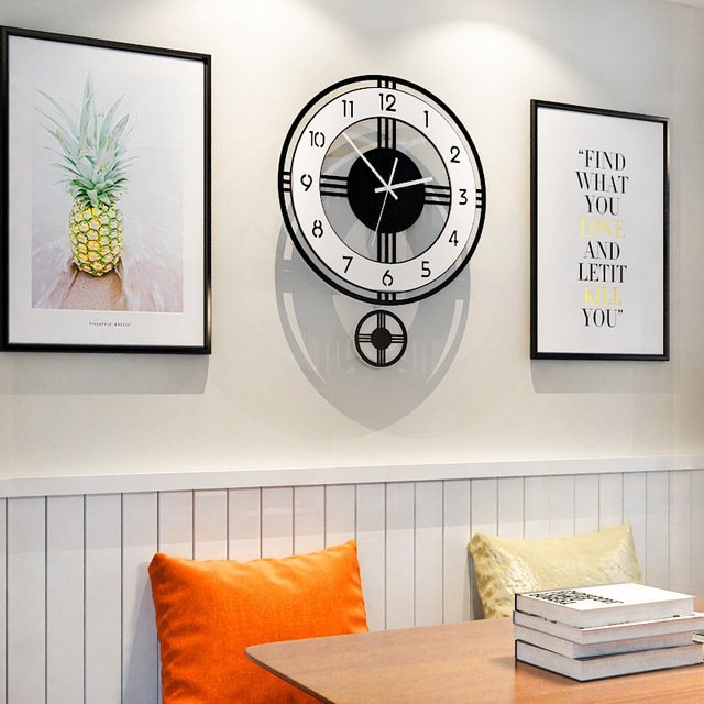 掛け時計 おしゃれ シンプル サイレント モノクロ 振り子 クォーツ アナログ