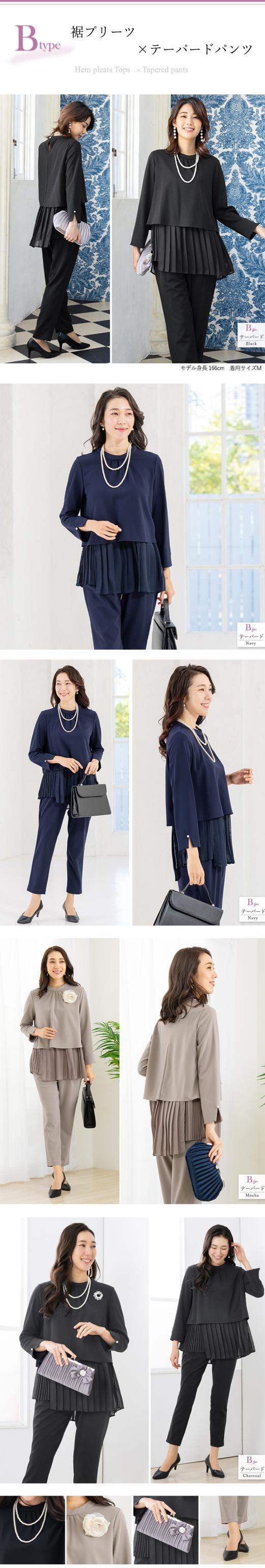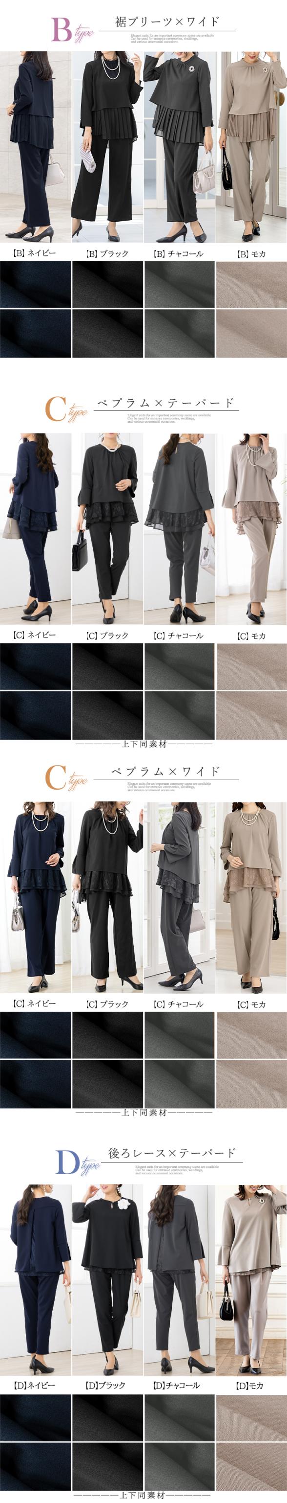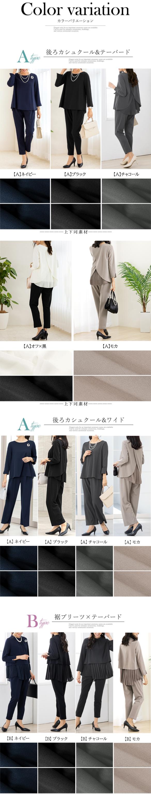 | カラー | ネイビー(紺色)・ブラック(黒)・チャコールグレー(灰色)・モカ トップスはオフホワイト(オフ白)もあり |