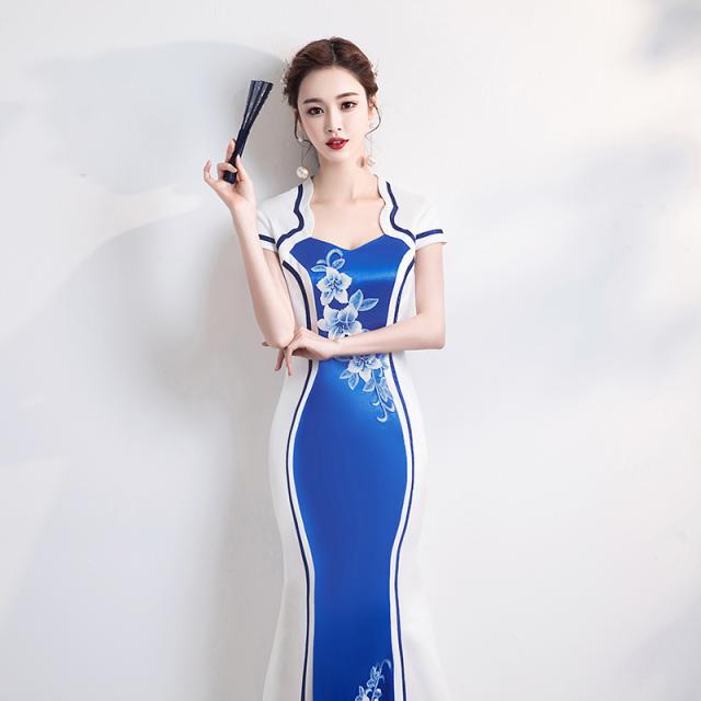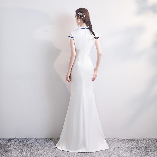 厳選 改良 チャイナドレス パーティドレス ロングドレス チャイナ服 ワンピ マーメイド 白 青 二次会 発表会 オーダーサイズ可 D149