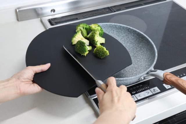 弾力性がありつつも適度な強度があり、片手で持っても形が崩れないので、切った食材をこぼさずお鍋やフライパンに移せます。
