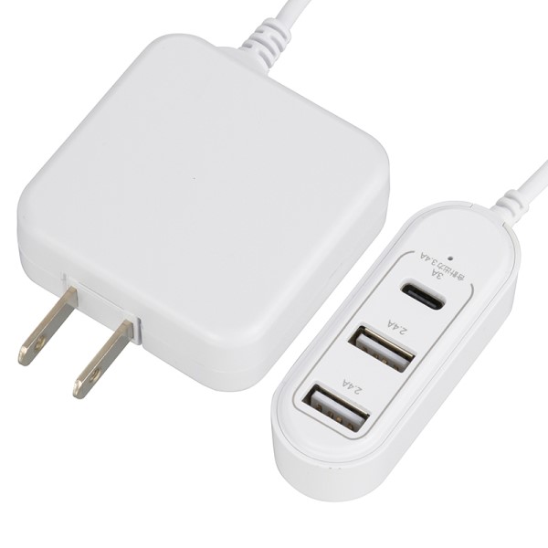コード付ACアダプター USB電源TypeC+TypeA×2