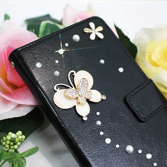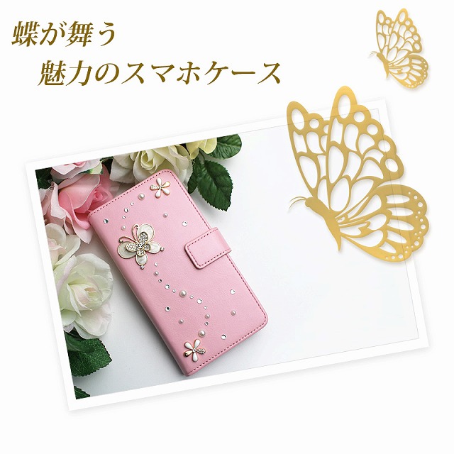 デコ 手帳型 スマホケース 蝶 バタフライ キラキラ ビジュー スマホカバー iPhone17 iPhone16e iPhone15 Xperia 10VII 10IV AQUOS sense9 sense8 sense3 Galaxy S24 A53 arrows We2 BASIO active3 Pixel8a Pixel7a グーグルピクセル9a 送料無料 多機種対応