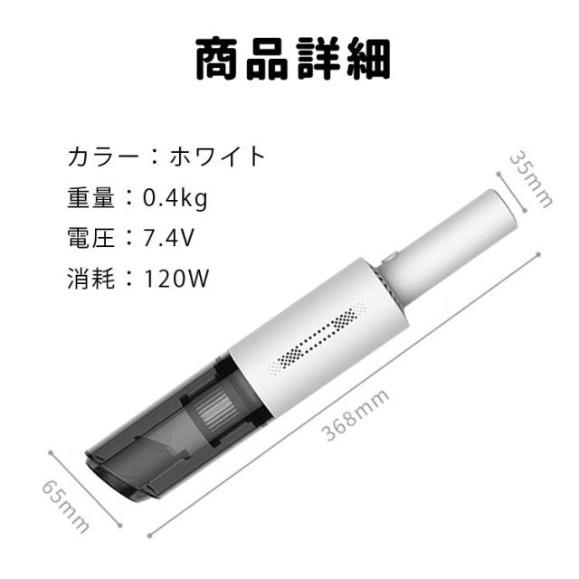 【ポータブル】:一般的なハンディクリーナーより軽量で、コンパクトなので収納に便利です。