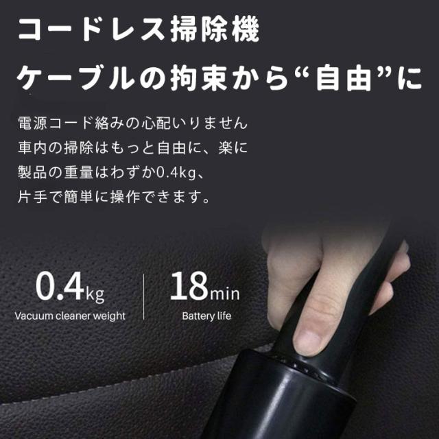【ゴードレス】:電源コード絡みの心配なく、軽くて快適に車内の掃除できます。