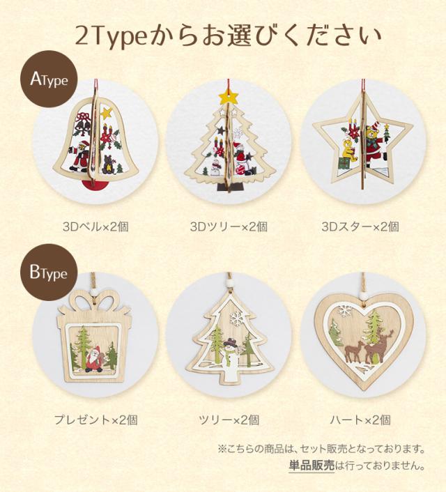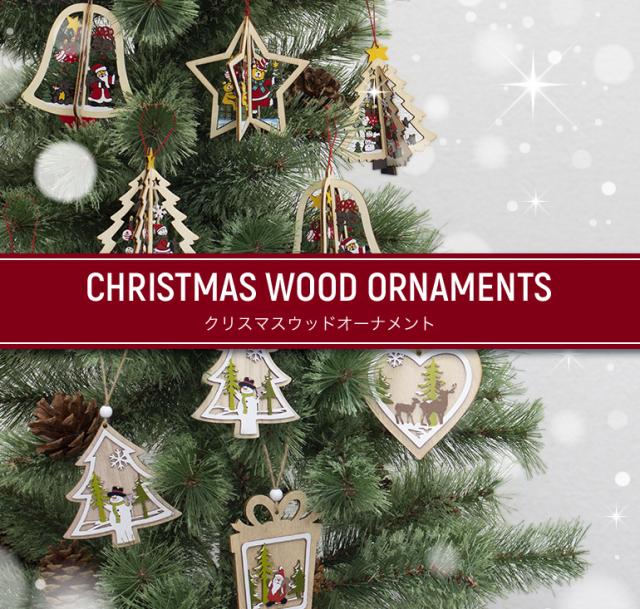 クリスマス ツリー オーナメント ウッド 6個セット 木製オーナメント 立体的 北欧らしいおしゃれなデザイン