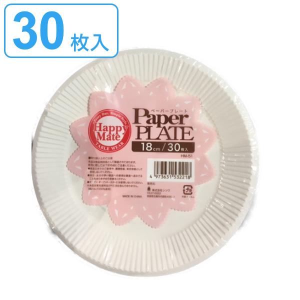紙皿 HMペーパープレート 18cm 30枚入 ( 使い捨て 紙 皿 簡易食器 プレート 30枚 取り皿 入れ物 BBQ アウトドア スープ パーティー キャンプ お花見 花見 行楽 クリスマス 誕生日 お誕生日 )