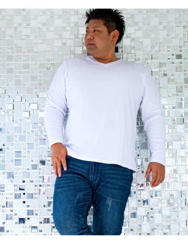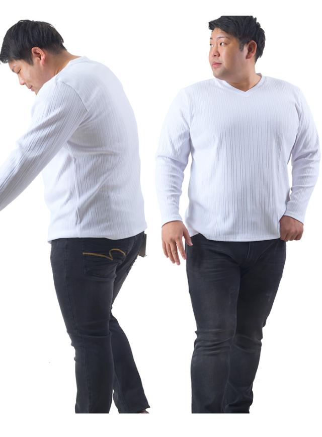 大きいサイズ メンズ SKKONE COLLECTION テレコ Vネック 長袖 Tシャツ 26482dh
