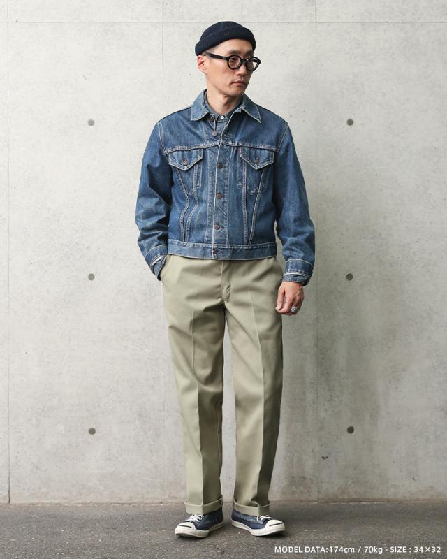 長きに渡って愛されるDickiesの名作“874”モデルのワークパンツです。表面はなめらかで鈍い光沢があり、ワークパンツらしいガシッとした質感が魅力的。ワークパンツでありながらスラックスのようなセンタークリースを備えることで、履き方やコーディネート次第でキレイめな着こなしにもマッチします。