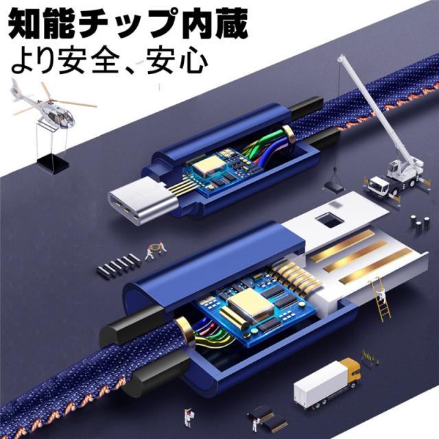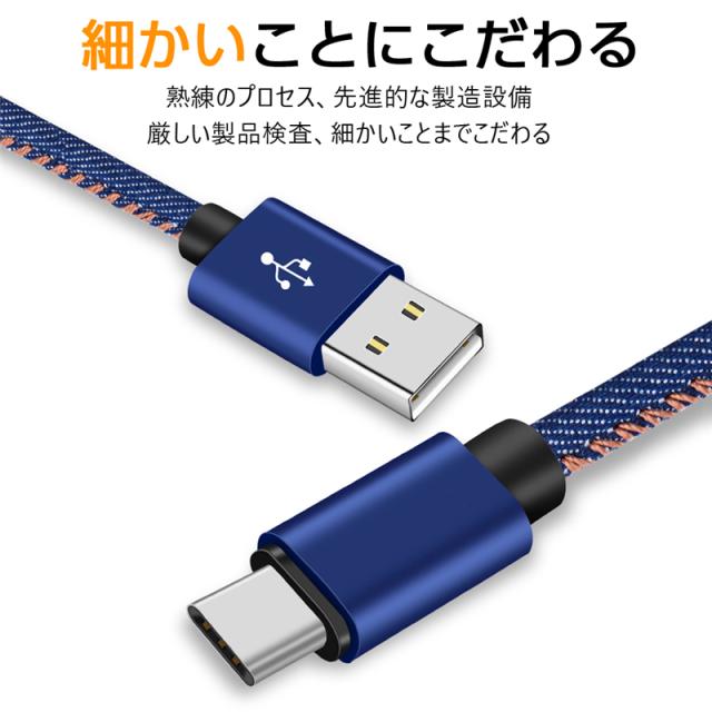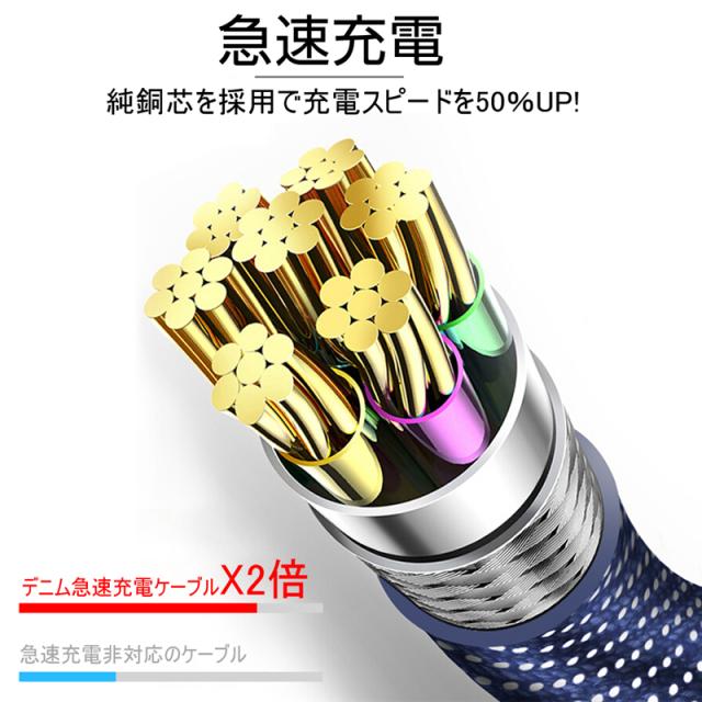 高品質デニムとTPE材料を採用し、製造プロセスにこだわって丁寧に作り上げの急速安全充電&データ転送ケーブルです。