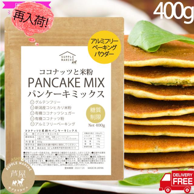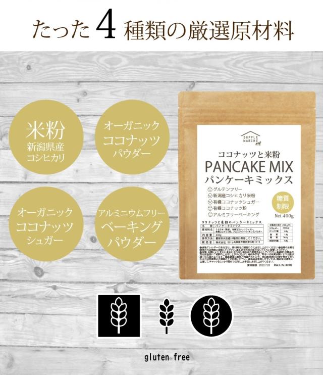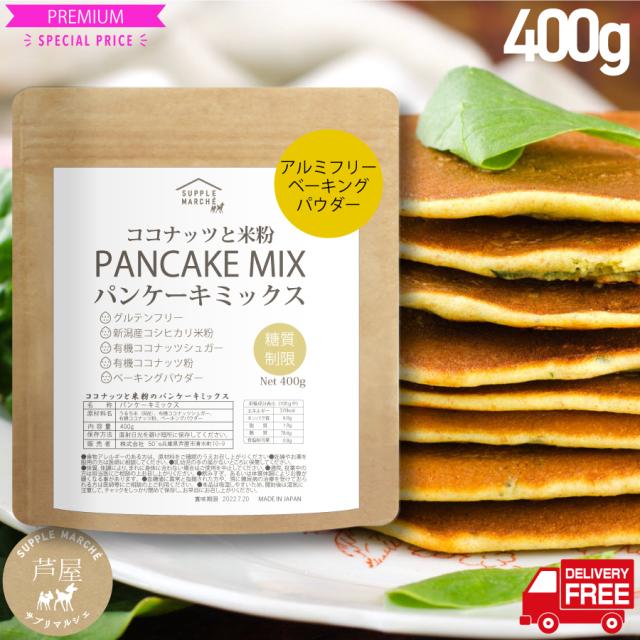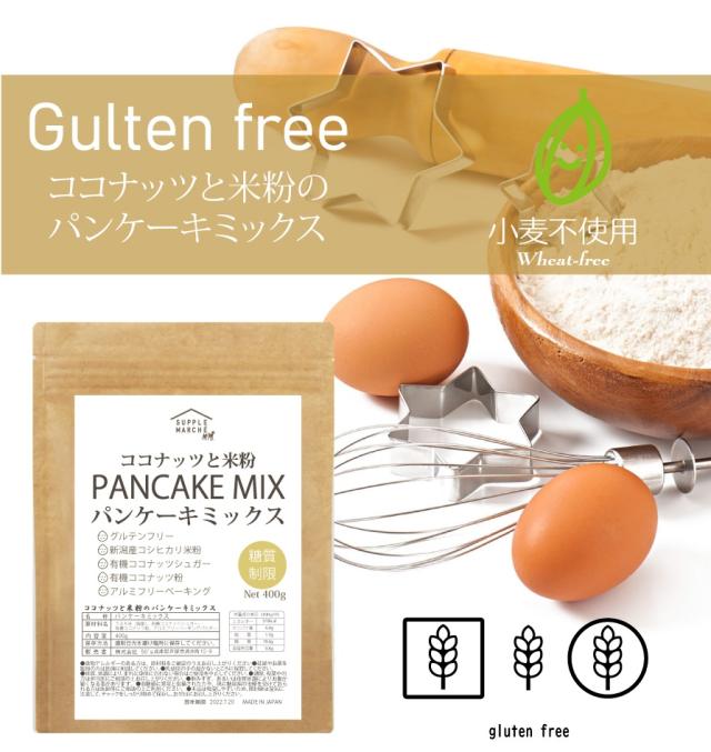 グルテンフリー ココナッツと米粉のパンケーキミックス400g 大人のパンケーキ お菓子 新潟県産 無添加 送料無料 国内製造 ホットケーキミックス 7大アレルゲン不使用 有機ココナッツ 有機ココナッツシュガー使用