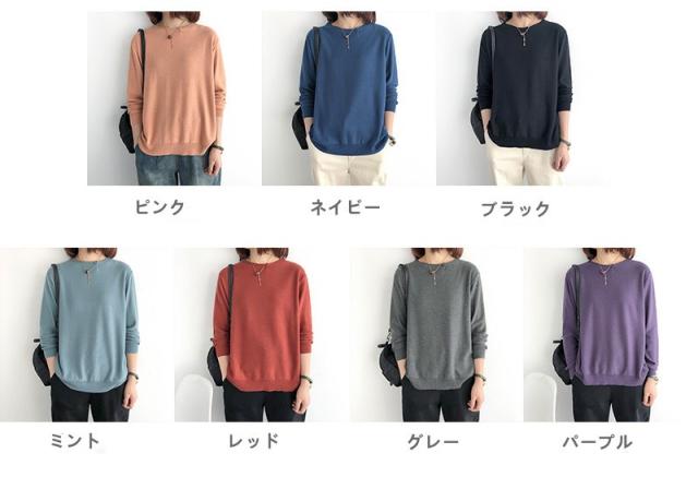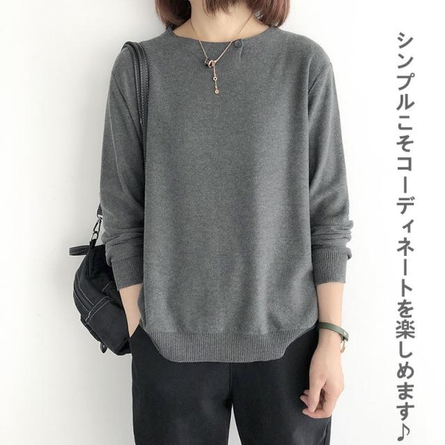 送料無料 ニット セーター トップス カットソー 長袖 薄手 レディース 秋冬 着やせ 大きいサイズ スリム フィット ゆるニット 無地 ゆったり