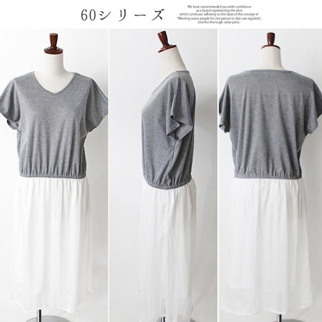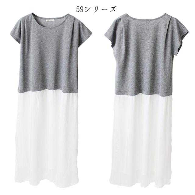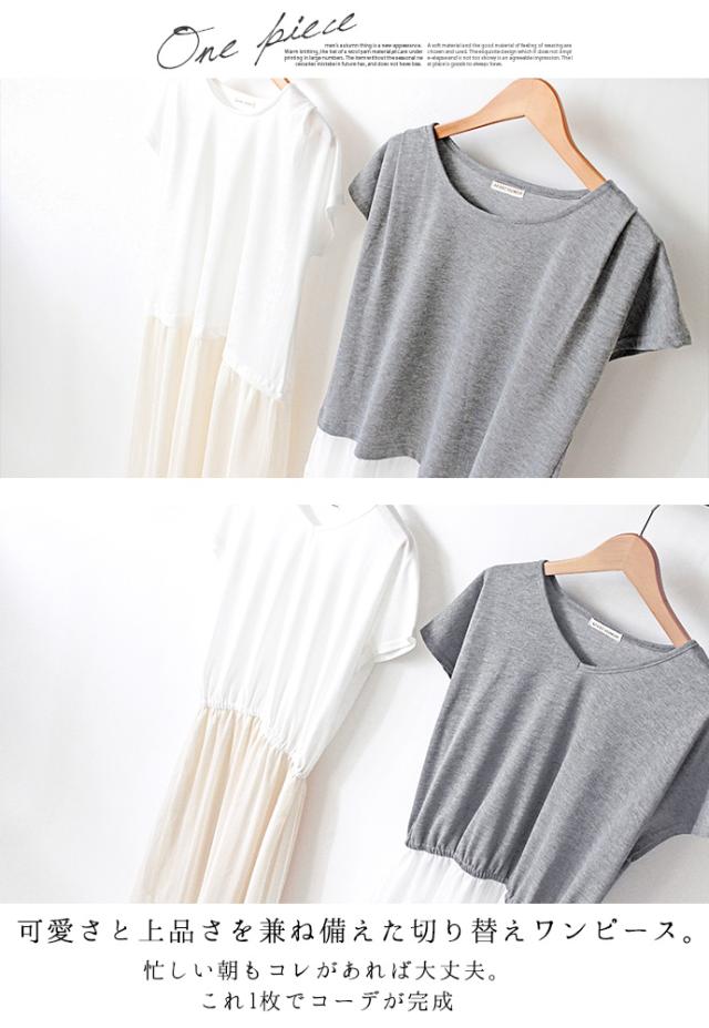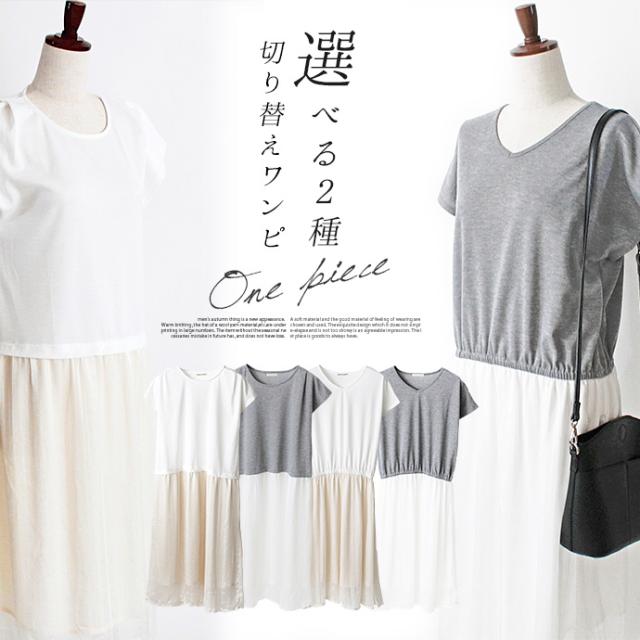 選べる2種♪コーデいらずの異素材使いドッキングワンピース。