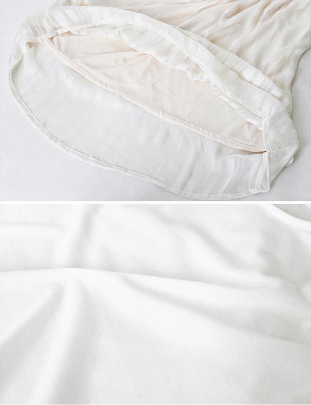 トップスとスカートの異素材使いがシンプルな中にもお洒落な雰囲気漂う1枚。
