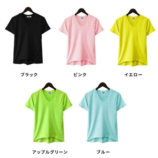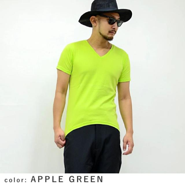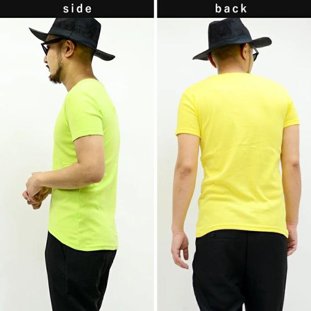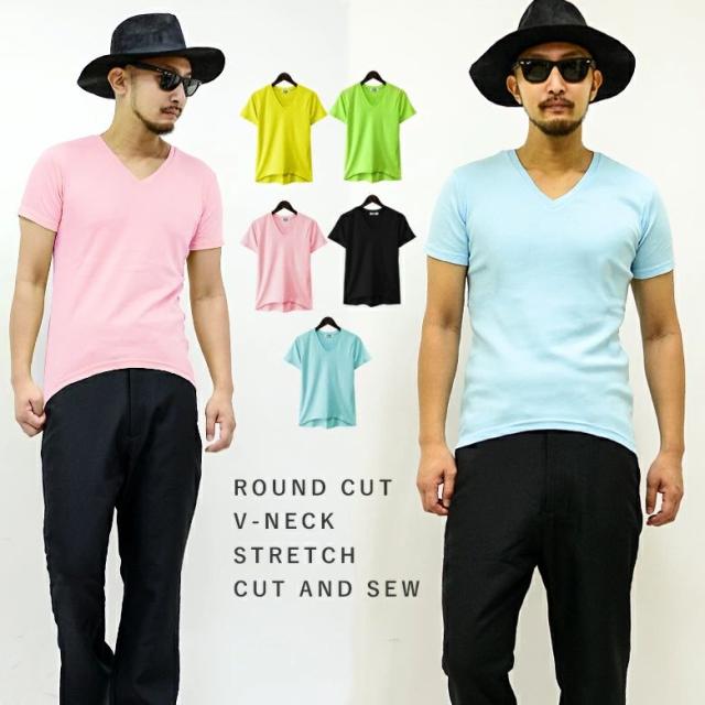 【閉店セール】ラウンドカット Vネックカットソー アシメデザインでトップスに差をつける!3184 心地良いストレッチ入り!メンズ Tシャツ 無地 カットソー Vネック パステル ネオンカラー ストレッチ 伸縮 インナー アシンメトリー ラウンドカット