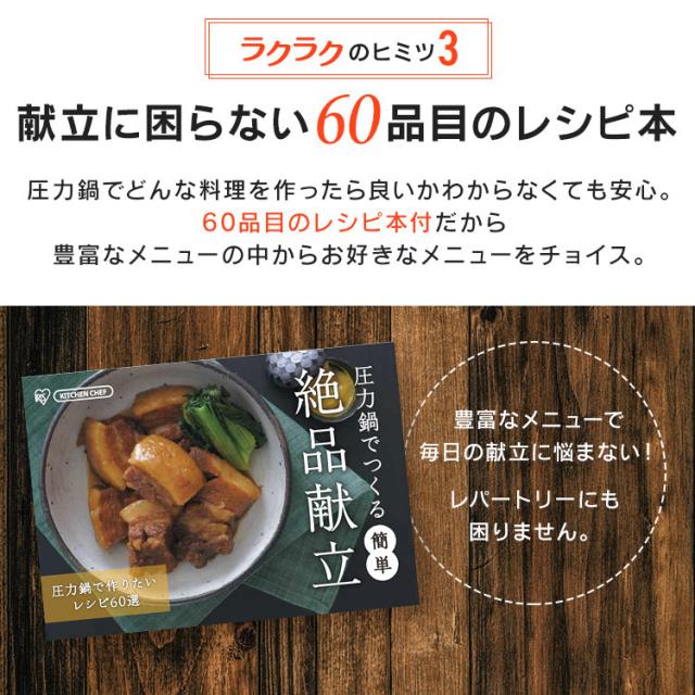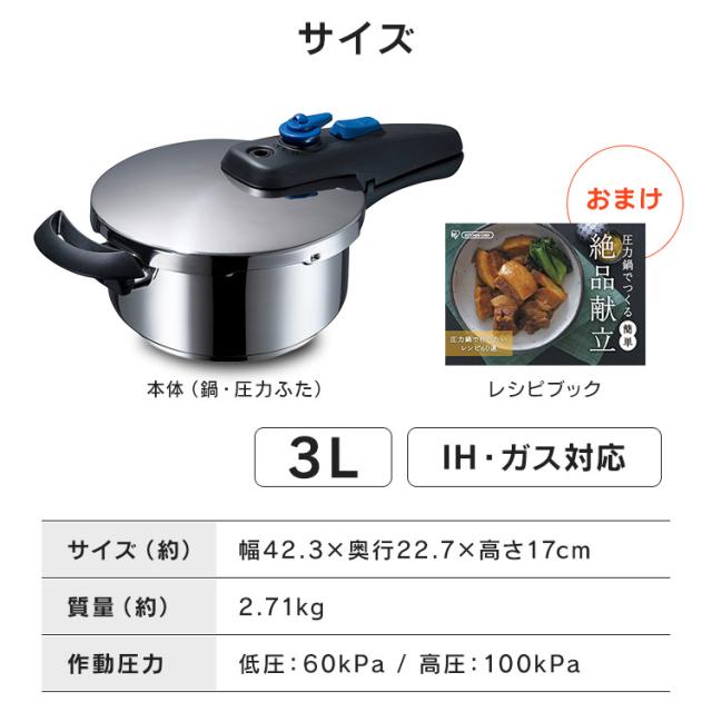 片手圧力鍋 3L KAR-3L 単品 調理家電 圧力なべ 圧力鍋 片手 簡単 かんたん 調理 料理 メモリ付き 使いやすい スライド式 安全 安全性 レシピ ローストビーフ カレー 角煮 プリン アイリスオーヤマ