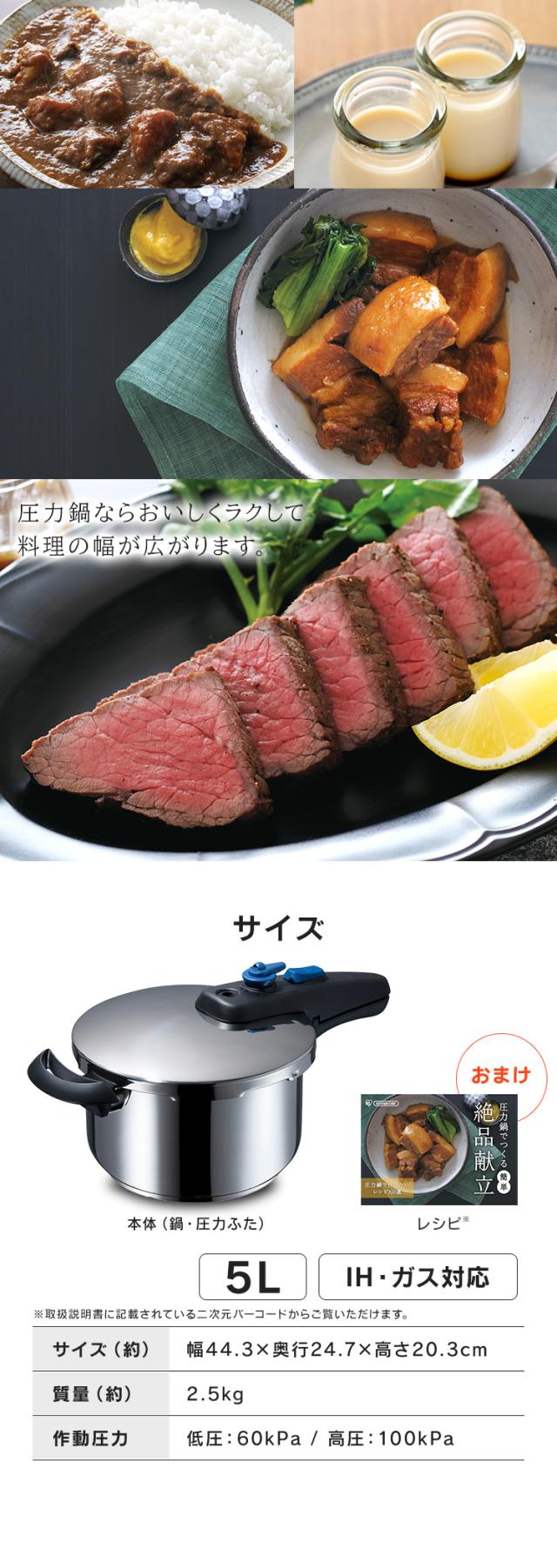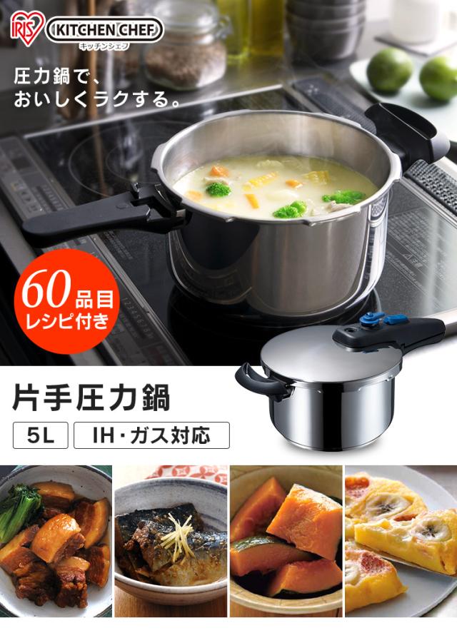 片手圧力鍋 5L KAR-5L 片手圧力鍋 5L 単品 使いやすい 料理 安全 時短 おいしい 保温性 スライド式 ラクラク展開 メモリ付き 見やすい ローストビーフ カレー 角煮 プリン アイリスオーヤマ 送料無料