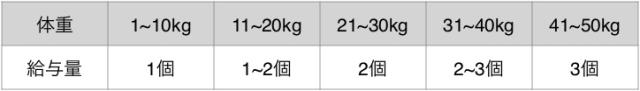 ・給与量を目安に与えてください。愛犬の運動量、健康状態などを考慮して与えてください。
