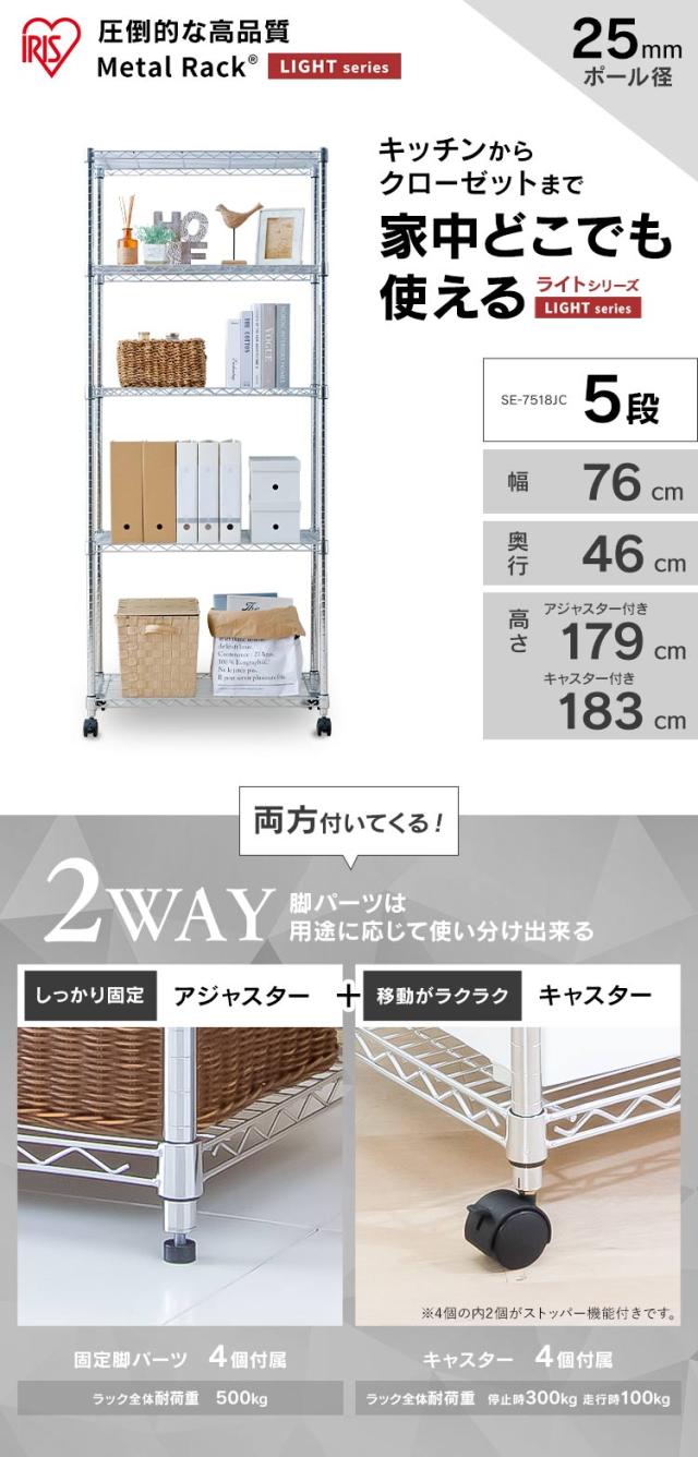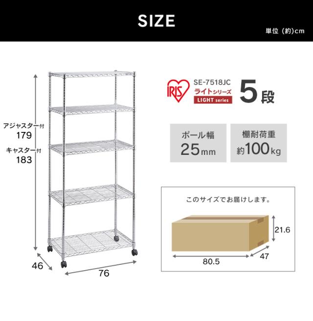 ★クーポンあり★ 棚 スチールラック ハンガーラック ラック 幅76 収納棚 メタルラック 5段 25mm メタルシェルフ SE-7518JC 収納ラック シェルフ メタルミニ 金属製ラック 組立ラック リビング収納 アイリスオーヤマ