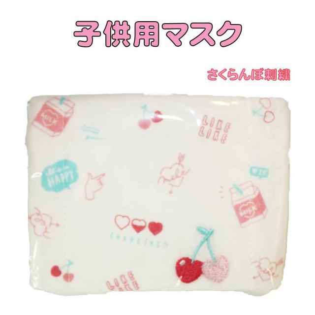 子供用マスク さくらんぼ刺繍柄 耳にやさしい平ゴム キッズマスク 小学校 学校給食 保育園 幼稚園 ?生口罩
