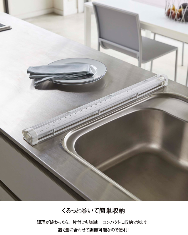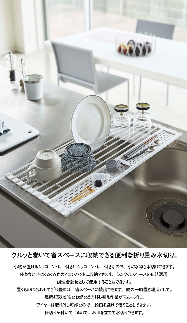 クルッと巻いて省スペースに収納できる便利な折り畳み水切り。