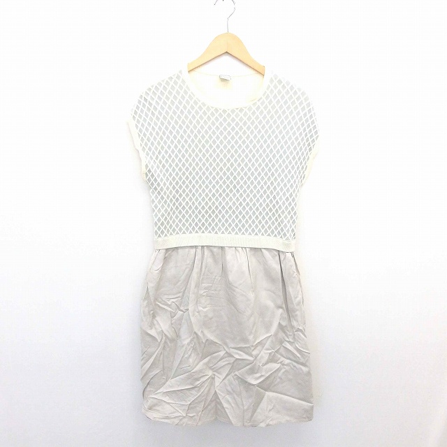 【中古】シャンブルドゥシャーム ワンピース ロング ニット アーガイルチェック ノースリーブ F ベージュ グレー