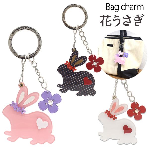 バッグチャーム うさぎ 花 バッグ チャーム ラビット フラワー 兎 鞄 カゴバッグ 飾り キーホルダー 可愛い オシャレ プチプレ 景品 ギフト 贈り物 お返し ばら撒き プチギフト プレゼント レディース 可愛い ストラップ かわいい 大人女子 オトナ女子 パステルカラー