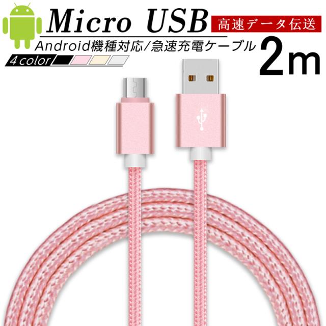micro USB ケーブル マイクロUSB Android用 長さ 2m 充電ケーブル スマホ ケーブル Android ケーブル USB micro データ転送 送料無料 【PL保険加入済み製品・安心】