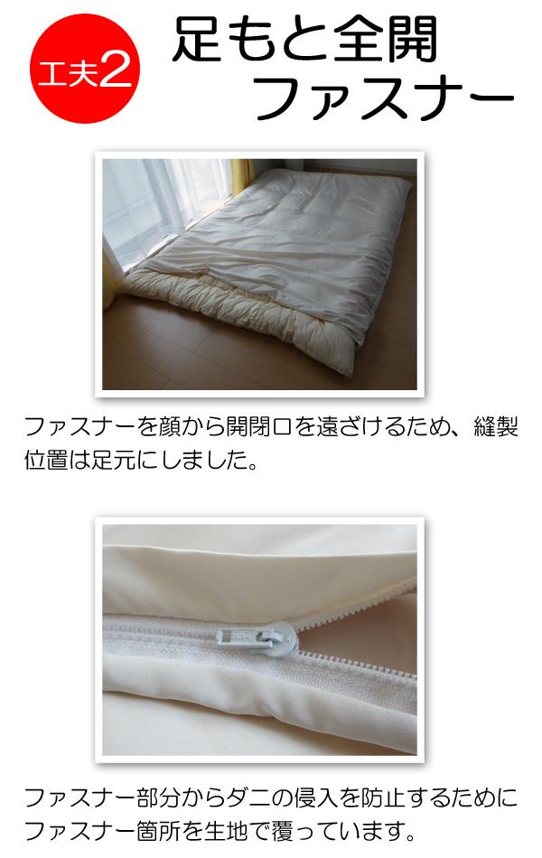 布団にカバーを掛けた時、ファスナー部分を足元に来るように掛けてください。