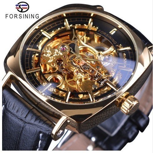 腕時計 メンズ 防水 Forsinig 自動機械式 クラシック ハイブランド レザーストラップ ブラック GMT1076