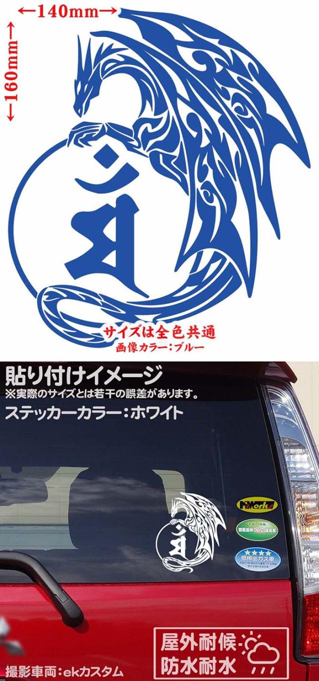 ドラゴン 梵字 ステッカー 干支梵字 マン 文殊菩薩 卯 うさぎ ドラゴン dragon 龍 左 11L カッティングステッカー 全12色 バイク かっこいい 車 おしゃれ バンパー タンク ステッカー 防水 耐水 アウトドア デカール 転写シール 160mmX140mm
