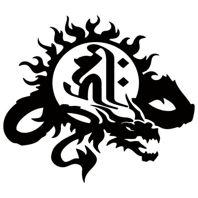 干支梵字 キリーク 阿弥陀如来 戌 亥 いぬ いのしし ドラゴン dragon 右 11R サイズL カッティングステッカー BOE8-011RB