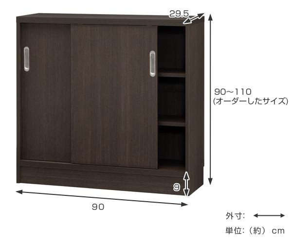 オーダー窓下収納棚 引き戸タイプ ポリエステル表面加工 高さ90〜110cm 幅90cm ( オーダー オーダーメイド 本棚 書棚 収納ラック 日本製 カウンター下収納 シェルフ 収納 収納棚 扉付き 吊り戸 シンプル スリム 収納庫 )